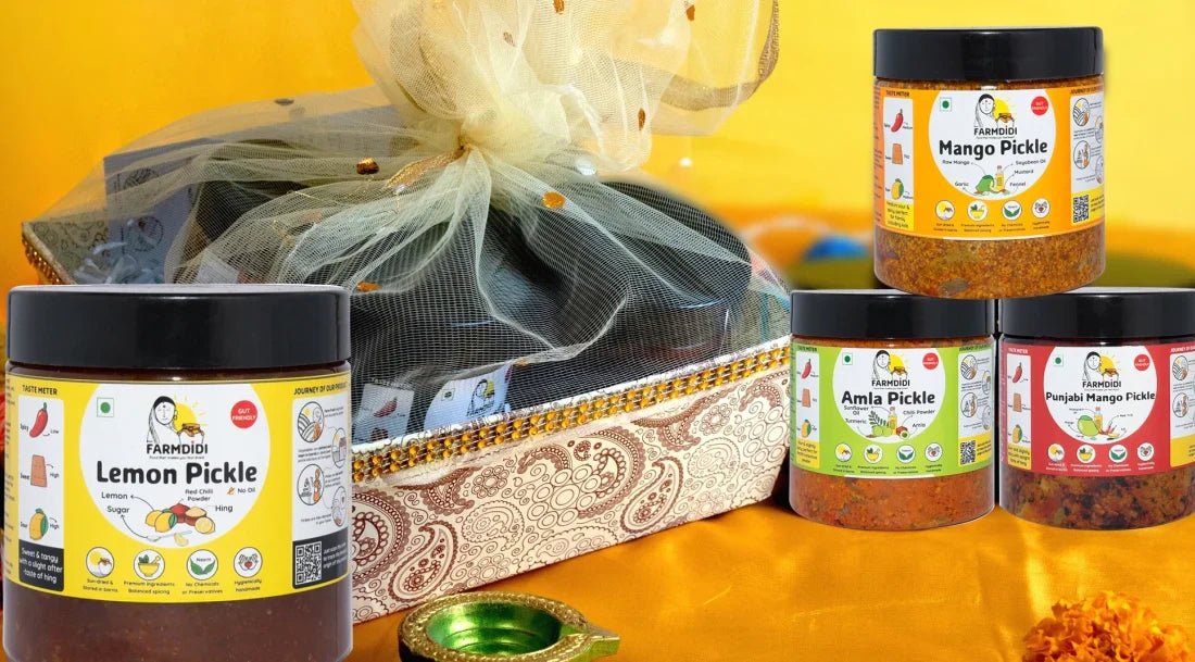 Are you someone who loves pickles? If yes, then our experts at Farmdidi are here to help you! Pickles are a popular food item enjoyed by many people in India. They not only add a tangy and delicious taste to our meals but also have several health benefits. With their increasing popularity, pickles have become a great theme for unique and creative gift ideas. In this blog, we will explore some interesting and quirky gifts for pickle lovers.So get ready to give your loved ones these unique gifts! Pickle-Inspired Kitchen Gadgets For those who love to incorporate pickles into their...