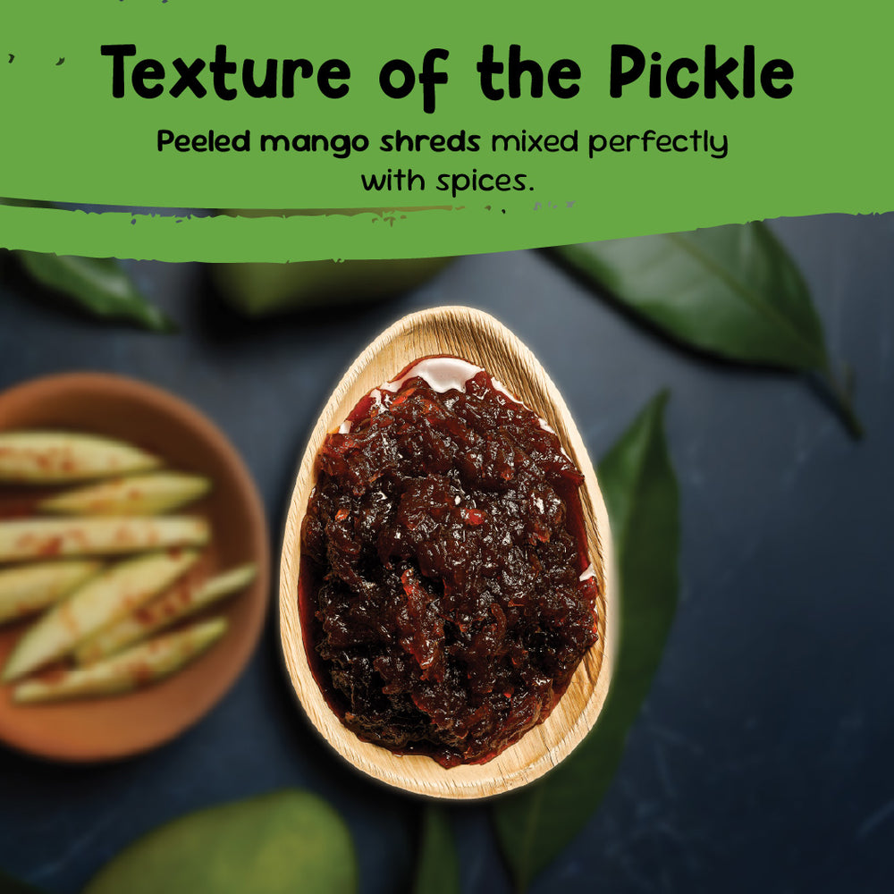 Key Ingredients | Fennel seeds, Nigella seeds, Asafoetida | Yellow mustard seeds, Fenugreek seeds | Raw mango, Mustard powder, Guntur red chilli | Sugar, Cumin powder, Asafoetida | Jaggery |